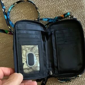 VERA BRADLEY CROSS BODY WALLET BLUE FLORAL 4” by 6”