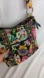 This crossbody bag features a striking floral pattern on a quilted fabric, accented with black trim for a sophisticated touch. Its compact design and zippered closure make it a practical choice for everyday use, while the gold-tone hardware adds a hint of elegance.