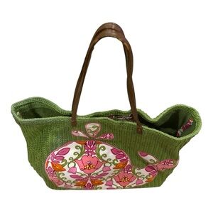 VERA BRADLEY Green Tote Bag with Pink Whale Design