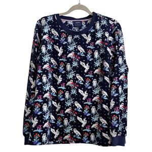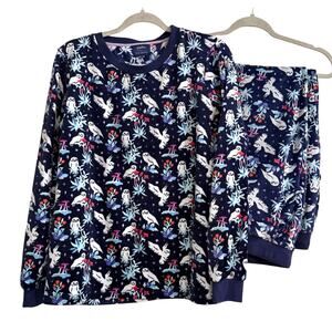 The Harry Potter + Vera Bradley Hedwig Navy Jogger Set is a cozy and stylish pajama set perfect for fans of the Wizarding World. This set includes a long-sleeve top with a round neckline, featuring the iconic Harry Potter Hedwig print, and a comfortable drawstring pant in size L. Made of lightweight polyester material, this set is machine washable and suitable for all seasons. Add a touch of magic to your bedtime routine with this adorable and unique pajama set.