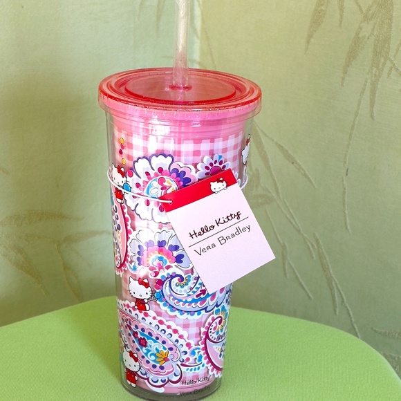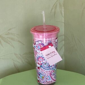 VERA BRADLEY HELLO KITTY DOUBLE WALL TUMBLER W/STRAW:NWT HELLO KITTY PAISLEY
