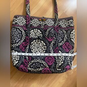 vera Bradley, pink, black, tote, tote bag, travel, travel bag, work bag, school bag, work, school, large, large tote, airplane bag, carry on, business, pockets,