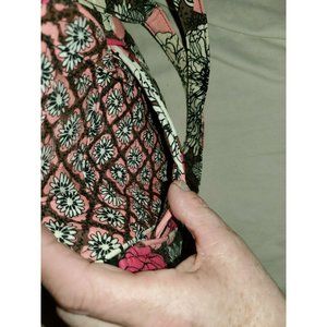 Vera Bradley Mocha Rouge Crossbody Purse Wallet. This is a great little crossbody with a main compartment with 2 slip in pockets, a zip pocket on the back, a pocket with a flap on the front, with an ID window under the flap, and a hidden slip in pocket behind the flap pocket. This item is in Excellent Pre-owned Condition.