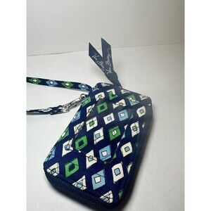 This beautiful Vera Bradley wristlet features a stunning mosaic pattern in shades of blue. With a zip-around closure, it is perfect for keeping all of your essentials organized in one convenient package. Made from high-quality cotton material, this wallet is both durable and stylish. The brand is well-known for their exceptional quality and attention to detail, making this piece a must-have for any fashion-conscious woman. Whether you are running errands or heading out for a night on the town, this wristlet is sure to impress.