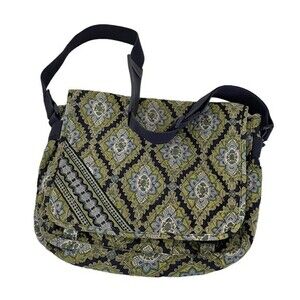 VERA BRADLEY Messenger Bag Cambridge Pattern Black Green White Adjustable Strap