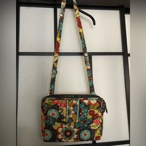 VERA BRADLEY Mickey Mouse tablet hipster bag , with max 50 inch adjustable strap , 13 inch wide by 10 inch high , with zip top and 2 outside pockets