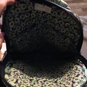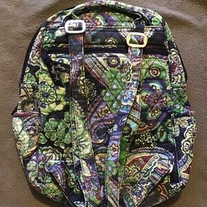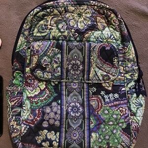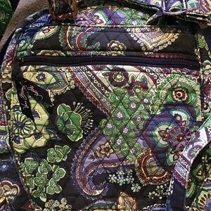 Euc. Only used a few times. Very cute in her green paisley print. Great for use as a backpack or a diaper bag. It measures approximately 13x11x4 inches.