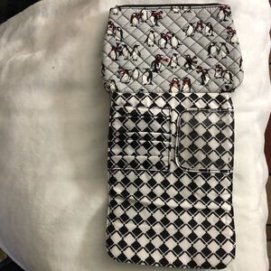 VERA BRADLEY Brush and Cosmetic Case Playful Penguins Gray Red Black.
