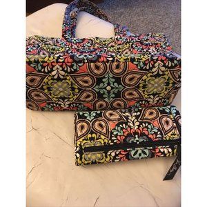 VERA BRADLEY Quilted Floral & Paisley Print Medium Bag W/Matching Wallet CLEAN