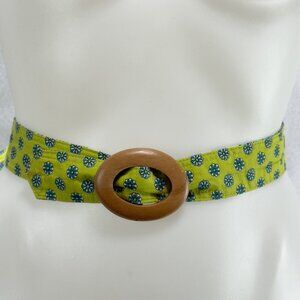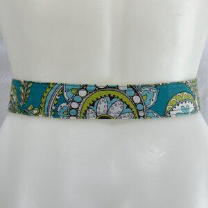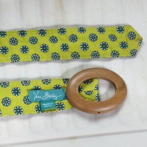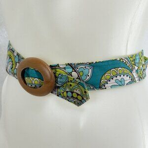 VERA BRADLEY Reversible Fabric Belt Wooden Buckle Blue & Green Floral Patterns