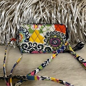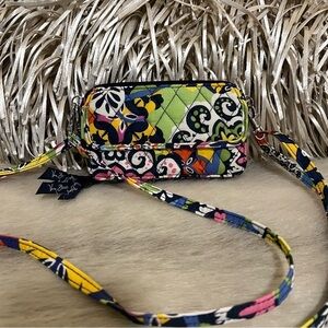 VERA BRADLEY Rio Iconic All in One Crossbody RFID Wristlet Wallet Travel Green Blue Yellow
