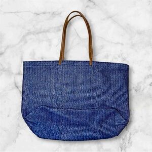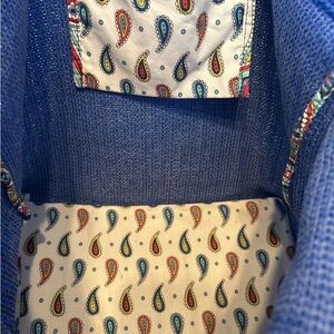 This beautiful Vera Bradley tote is perfect for any occasion, whether it's a day at the beach, a party, or just a casual outing. With a stunning blue woven anchor pattern and paisley accents, this tote is sure to turn heads. The bag is made of durable straw material with quilted finish and features double handles with brown canvas straps.