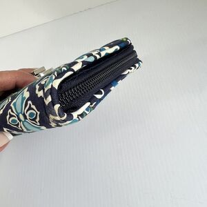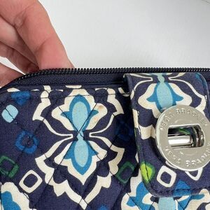 VERA BRADLEY Turnlock Wallet RIFD Pattern Blue Ink Zip Around Large Quilted
