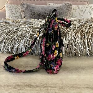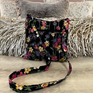 VERA BRADLEY Wildflower Garden Zipper Hipster Crossbody Black Pink Yellow Floral