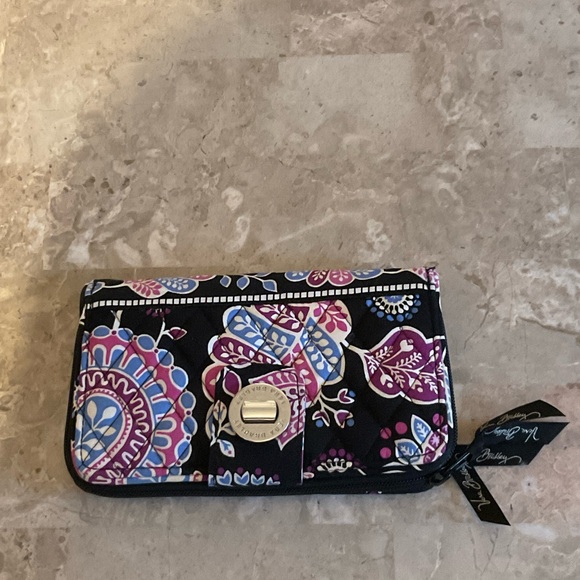 New without tags. Vera Bradley Stylish women's clutch featuring a vibrant floral design. The black and pink colors make it a versatile accessory for any outfit.