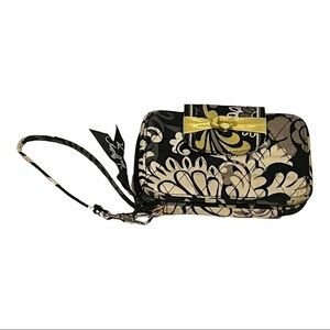 Vera Bradley wristlet wallet in Baroque; yellow, black and gray pattern. Good pre-owned condition.