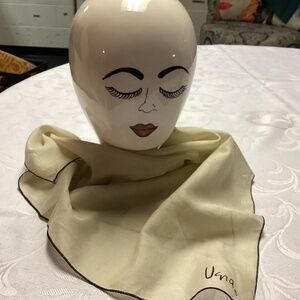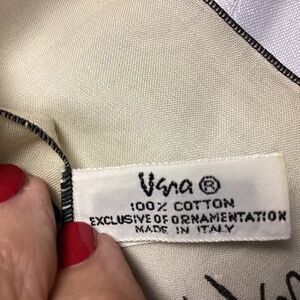 I have never seen a euro scarf like this it’s made of cotton it’s made in Italy machine wash tumble dry he was a cool iron if you need to and the measurement and this is approximately 19 x 19 absolutely gorgeous beige with the big big Vera signature. Let me know if you know anything about this. I’ve not seen many Vera has made in Italy. Let me know never use non-smoking no pet home.