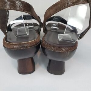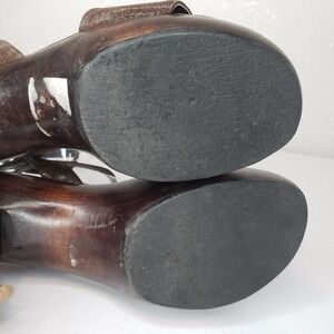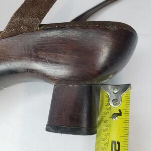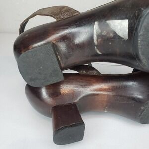 VERA PELLE Antique Japanese Wooden Shoes Asian Ankle Wrap Open Toe Sz 37 Brown