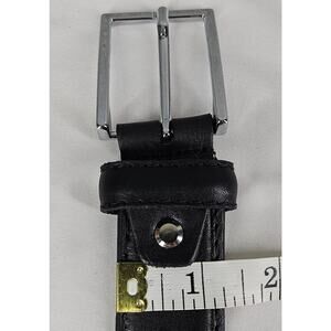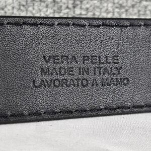 Classic and refined Vera Pelle belt crafted in smooth black genuine leather with a polished chrome buckle. Handmade in Italy with visible edge stitching and premium materials. Marked 120/105 (fits approx. Men’s 42–46 waist)