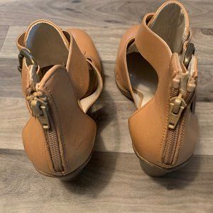 VERA PELLE CAMEL COLORED BOOTIE. EUC. SMOKE FREE . ALSO ZIPS UP FROM THE BACK. SAYS 39 EUR ON BOTTOM , USA SIZE IS 8.5
