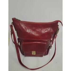 VERA PELLE XL GENUINE LEATHER RED SHOULDER BAG MADE IN ITALY
