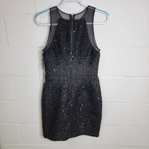 VERA WANG Black Cocktail Dress Metallic Textured Sleeveless Zipper Back Mesh 6