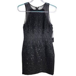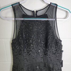 VERA WANG Black Cocktail Dress Metallic Textured Sleeveless Zipper Back Mesh 6 see photos for measurements new with tags