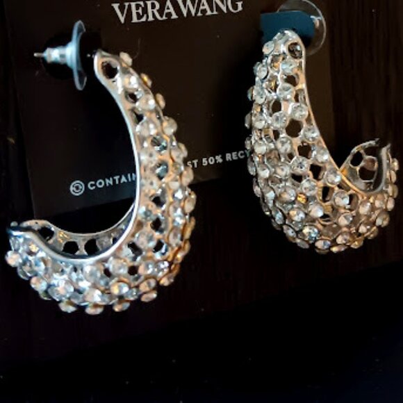 ONLY **2** PAIRS LEFT!!! NEW!!! VERA WANG Glamorous Silver Clear Crystal 1.75" C Hoop Statement Earrings**These Earrings Really Make a Statement! Silver C Hoops are decorated with Clear Crystals that go all the way around! Fabulous Earrings to Jazz up your Outfit! I have a Huge Collection of VERA WANG Jewelry & More (**See the other Listings!**)!**1.75" Tall/Post Backs**NEW ON HANG TAG!