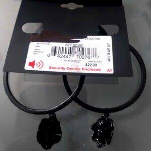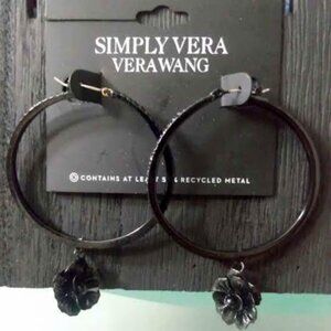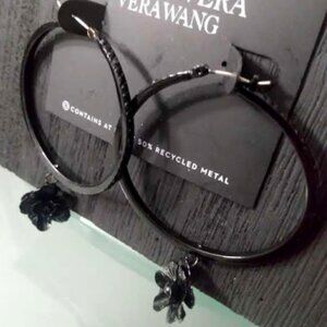 ONLY **3** PAIRS LEFT!!! NEW!!! VERA WANG Goth Black Flower/Black Crystal Hoop Earrings**Earrings have a Black Hoops decorated Black Crystals! There is a Black Flower with a Black Crystal in the middle dangling below! Edgy Earrings that will Compliment so Many Fall & Winter Outfits!**Earrings have a 2.3" Hoop (2.65" Long Including the Flower)/Post Backs**NEW ON HANG TAG!