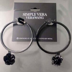 VERA WANG Goth Black Flower/Black Crystal Hoop Earrings**NEW!