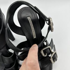 VERA WANG LAVENDER Hunter Green Strappy 4.5" SANDALS Heels Size 9M Great preowned condition