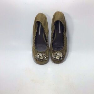 VERA WANG LAVENDER Millie olive green jeweled suede ballet flats Size 7 M