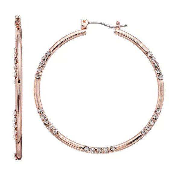ONLY **1** PAIR LEFT!!! NEW!!! VERA WANG Mod/Contemporary Rose Gold/Clear Crystal Hoop Earrings**Rose Gold Hoop Earrings are accented with Clear Crystals! Beautiful Earrings to add to your Jewelry Collection! I have a Huge Collection of VERA WANG Jewelry & More (**View other Listings to See Everything!**)!**Earrings are 1.64" Tall**NEW ON HANG TAG!