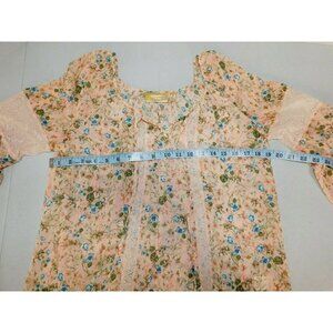VERA WANG Princess sheer blouse, top, pink, peach with flowers, woman's size M