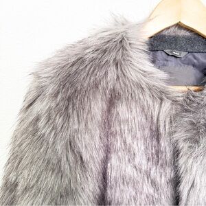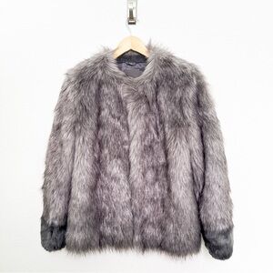 VERA WANG Scarlett Faux Fur Collarless Contrast Coat Jacket Size Medium