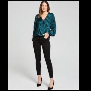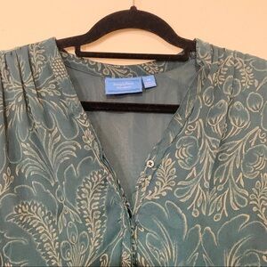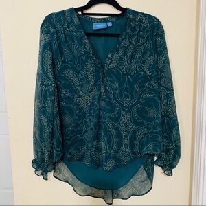 Gorgeous feminine sheer sleeves green paisley blouse.