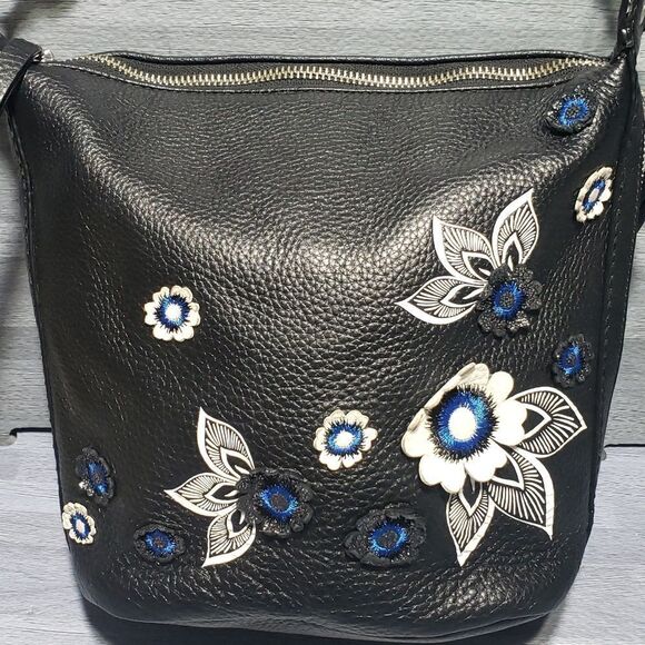 VERA BRADLEY Carson Mini Hobo Crossbody LOTUS BLOOMS Black Blue LEATHER, great condition, see pictures for more details.