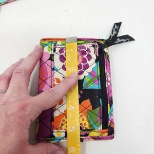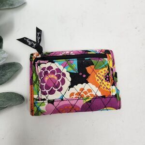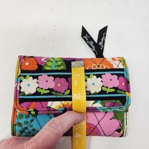 Cute colorful floral trifold wallet with the signature Vera Bradley look. It is cloth and has some light wear as shown in the photos. It measures approximately 4" x 5.5". Please see all photos as this is the exact piece you will receive. Thank you so much for looking. I am always open to reasonable offers. Have a fantastic day!