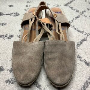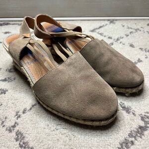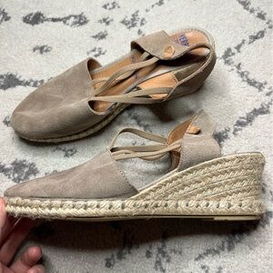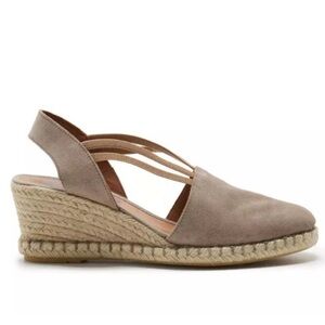 VERBENAS Maika Beachy Boho Tan Genuine Leather Slip On Espadrille Wedges