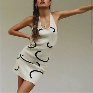 A stretchy knit fabric 65% cotton 35% Polyester Perfect for the summer. Its unfortunately too short for my comfort.
