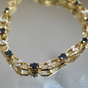 VERMEIL 10 Carat Black Sapphires & Diamonds Designer Bracelet