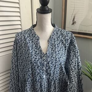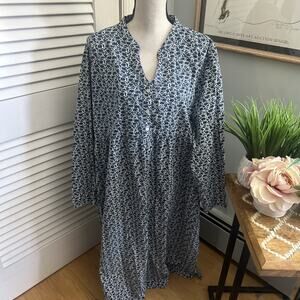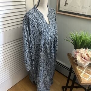 VERMONT COUNTRY STORE Dress Womens 1X Blue White Abstract Maxi Long Sleeve Boho