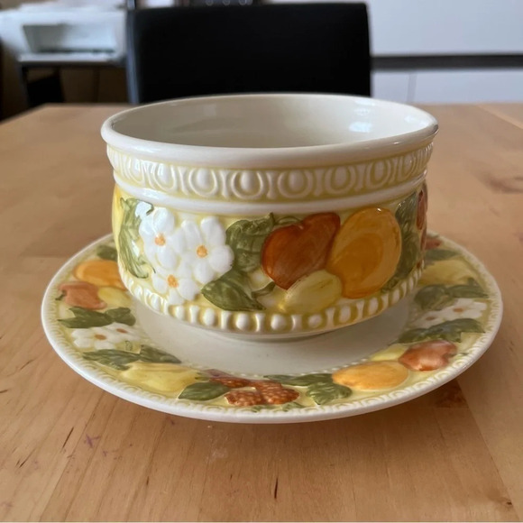VERNON WARE DELLA ROBBIA DINNERWARE GRAVY / SAUCE BOAT BY METLOX USA FRUIT