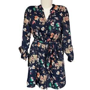 VERO MODA 4-Button Front Tie Waist Navy Floral Roll Sleeve Lined Dress | Size M