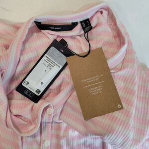 VERO MODA Aria Short Button Dress In Roseatte Spoonbill Stripes Size L NWT