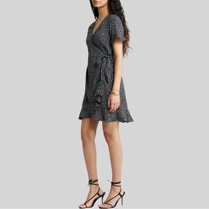 VERO MODA Black Polka Dot Henna Frill Wrap Dress, Size Small- True wrap dress with side tie closure V-neck and short sleeves. This is a very flattering dress for most body shapes, and it’s trimmed with fanciful frills that adds an air of romance. This product meets Nordstrom Sustainable Sourced Materials criteria: contains at least 50% sustainably sourced materials