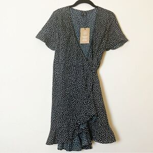 VERO MODA Black Polka Dot Henna Frill Wrap Dress, Size Small