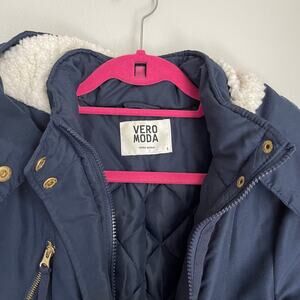VERO MODA Blue Gold Parka Coat (Size Small)