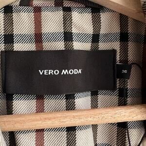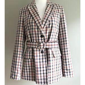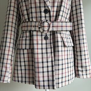 VERO MODA Check Plaid Belted Blazer Jacket Sz Small Preppy Academia Classic