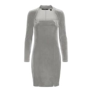 VERO MODA NWOT XS mini dress velvet front splits long sleeve Dress Ghost gray